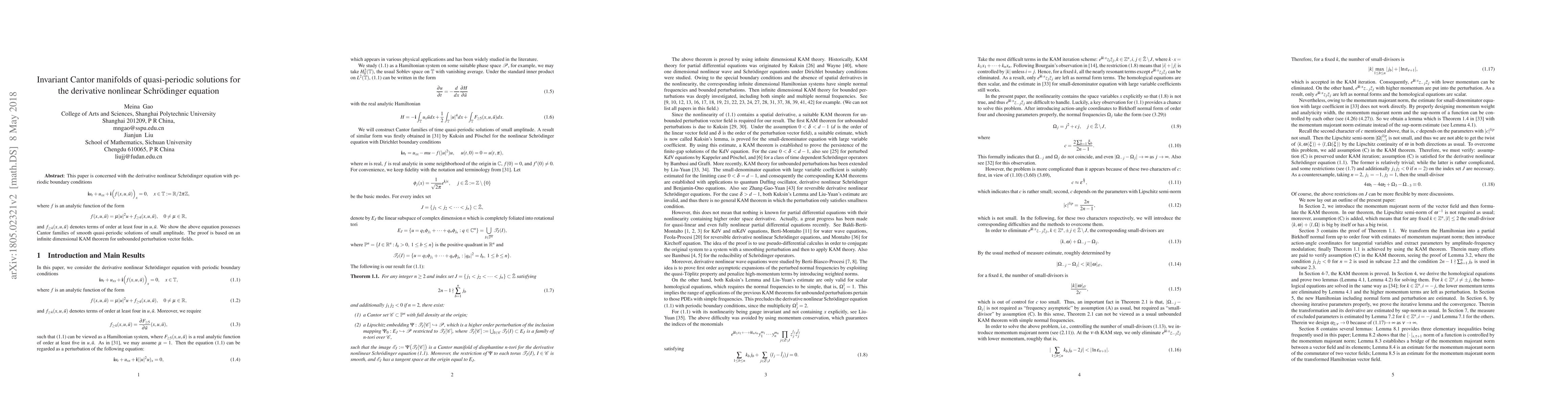 This paper investigates the derivative nonlinear Schrödinger equation with periodic boundary conditions, demonstrating the existence of invariant Cantor manifolds of quasi-periodic solutions of small amplitude, using an infinite-dimensional KAM theorem for unbounded perturbation vector fields.