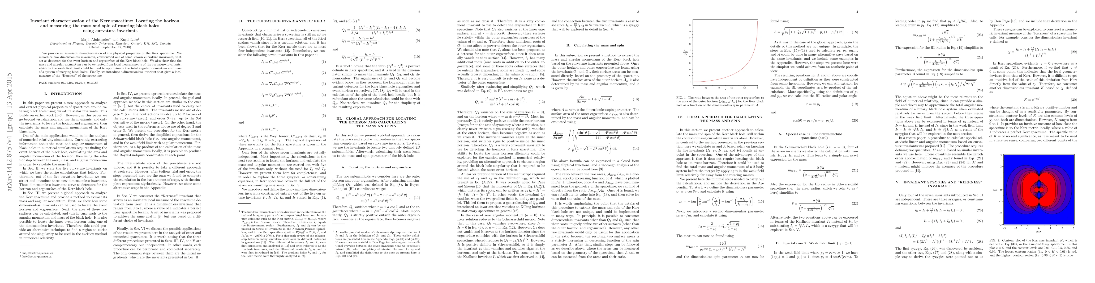 We provide an invariant characterization of the physical properties of the Kerr spacetime. We introduce two dimensionless invariants, constructed out of some known curvature invariants, that act as detectors for the event horizon and ergosurface of the Kerr black hole. We also show that the mass and angular momentum can be extracted from local measurements of the curvature invariants, which in the weak field limit could be used to approximate the total angular momentum and mass of a system of merging black holes. Finally, we introduce a dimensionless invariant that gives a local measure of the "Kerrness" of the spacetime.