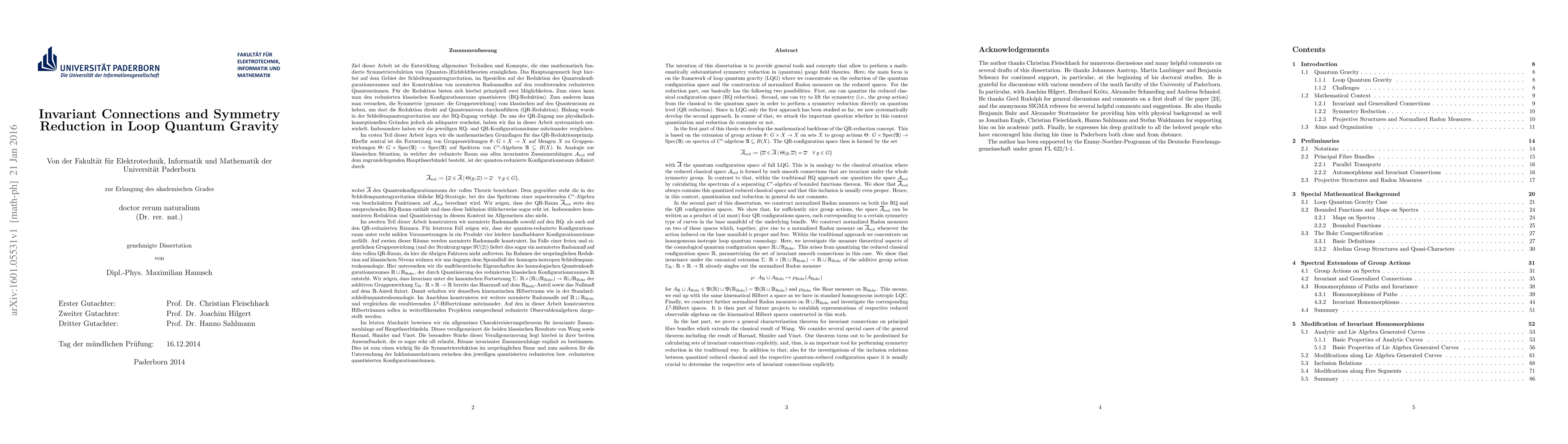 The intention of this thesis is to provide general tools and concepts that allow to perform a mathematically substantiated symmetry reduction in (quantum) gauge field theories. Here, the main focus is on the framework of loop quantum gravity (LQG), where we concentrate on the reduction of the quantum configuration space, and the construction of a normalized Radon measures on the reduced one. More precisely, we introduce a new way to symmetry reduce the LQG-configuration space directly on the quantum level, and then show that this always leads to a (strictly) larger reduced space than quantizing the classical configuration space of invariant connections (traditional approach). We prove a general classification theorem for such invariant connections, which we then use to calculate the classical configuration space for the homogeneous and the spherically symmetric case. Here, the backbone of the introduced reduction concept is a lifting result for group actions on sets to spectra of $C^*$-subalgebras of the bounded functions thereon; and as a further application of this, we single out the standard kinematical Hilbert space of homogeneous isotropic loop quantum cosmology by means of the same invariance condition for both the standard configuration space $\mathbb{R}_{\mathrm{Bohr}}$, as well as for the Fleischhack one $\mathbb{R}\sqcup\mathbb{R}_{\mathrm{Bohr}}$. Along the way, symmetries of embedded analytic curves under a given analytic Lie group action are investigated, and a first classification result is proven for the case that the action is proper or pointwise proper and transitive, and only admits normal stabilizers.