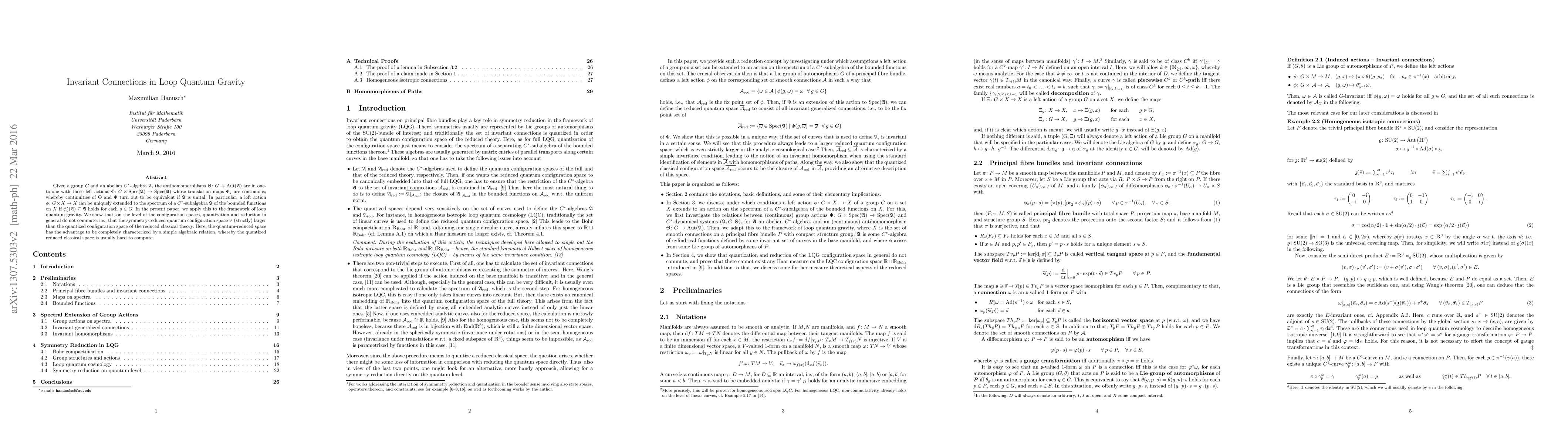 This paper explores invariant connections in loop quantum gravity, demonstrating that quantization and reduction do not generally commute. It shows that the symmetry-reduced quantum configuration space is larger than the quantized configuration space of the reduced classical theory, with the former being more easily characterized.