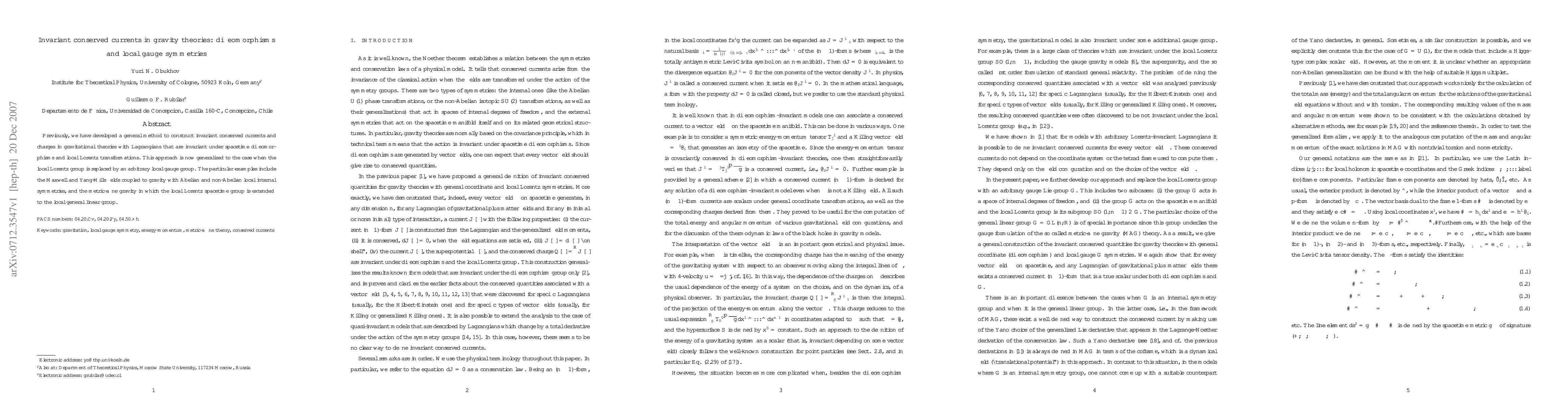 This paper generalizes a method for constructing invariant conserved currents and charges in gravitational theories, extending the approach to include arbitrary local gauge symmetries beyond just local Lorentz transformations, with applications to coupled Maxwell and Yang-Mills fields and metric-affine gravity.