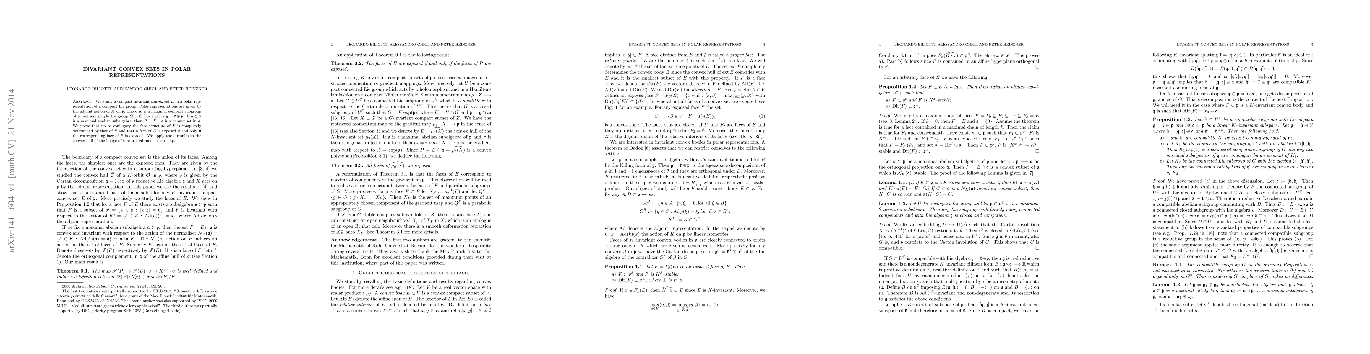 Researchers study invariant convex sets in polar representations of compact Lie groups, finding that face structures are determined by corresponding subsets in the maximal abelian subalgebra.