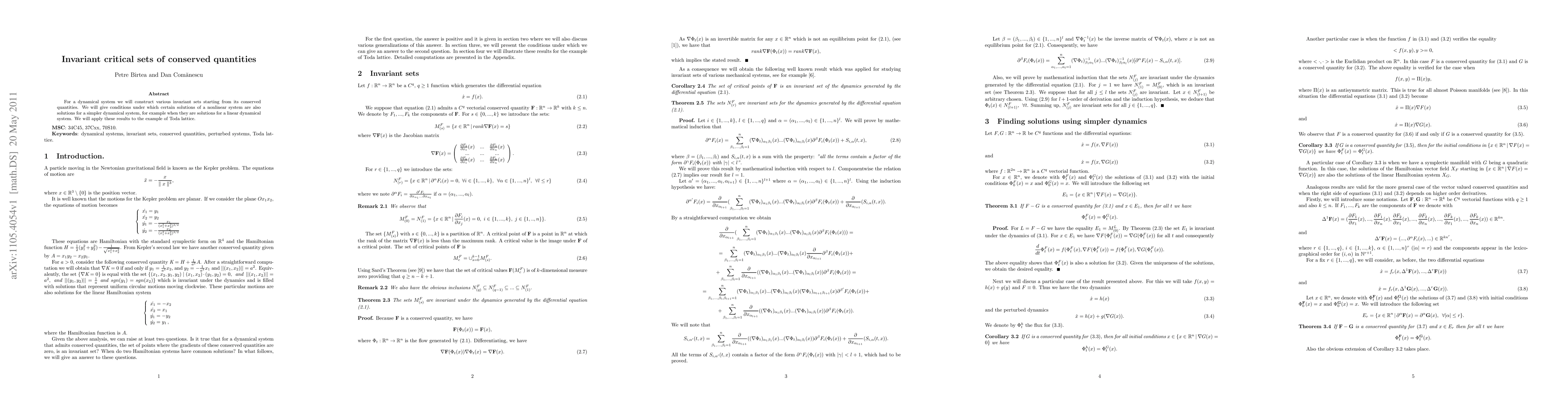 This paper constructs invariant sets from a dynamical system's conserved quantities and establishes conditions for solutions of nonlinear systems to also solve simpler systems, such as linear ones. The method is demonstrated using the Toda lattice as an example.