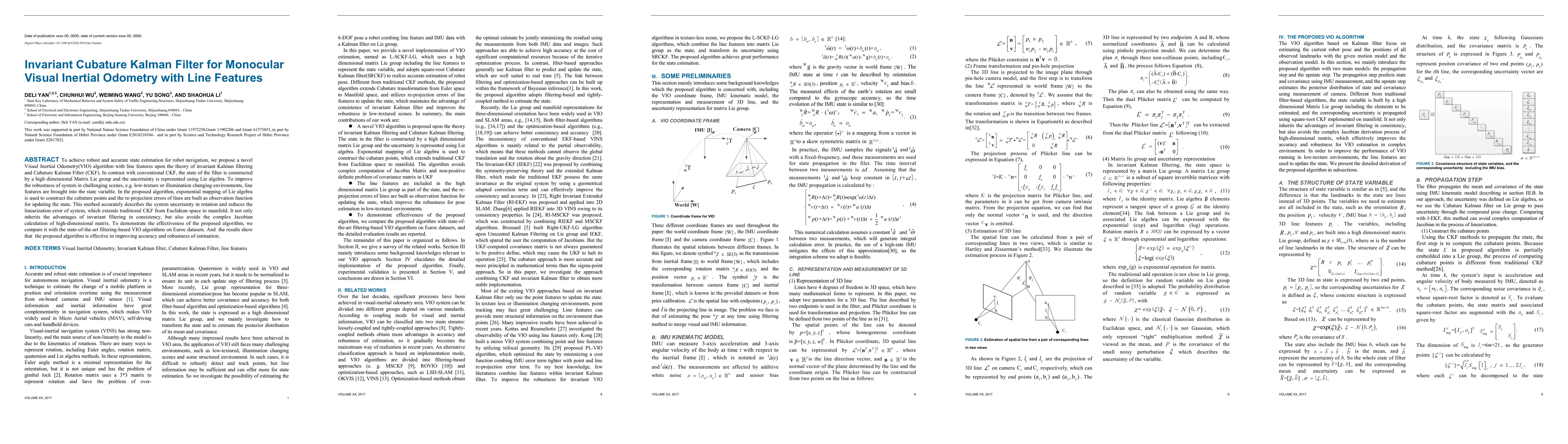 The paper proposes a novel Visual Inertial Odometry (VIO) algorithm using invariant Cubature Kalman Filter (CKF) with line features to enhance robustness and accuracy in challenging environments. The method leverages Matrix Lie group and Lie algebra to reduce linearization errors and avoid complex Jacobian calculations, demonstrating superior performance compared to state-of-the-art algorithms on Euroc datasets.