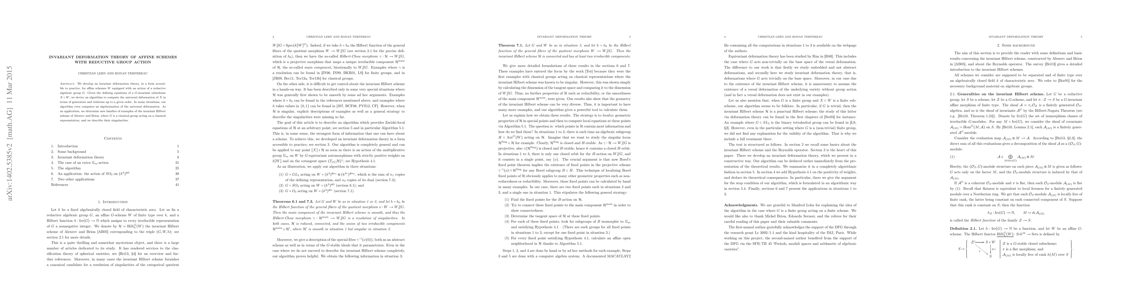 We develop an invariant deformation theory, in a form accessible to practice, for affine schemes $W$ equipped with an action of a reductive algebraic group $G$. Given the defining equations of a $G$-invariant subscheme $X \subset W$, we device an algorithm to compute the universal deformation of $X$ in terms of generators and relations up to a given order. In many situations, our algorithm even computes an algebraization of the universal deformation. As an application, we determine new families of examples of the invariant Hilbert scheme of Alexeev and Brion, where $G$ is a classical group acting on a classical representation, and describe their singularities.