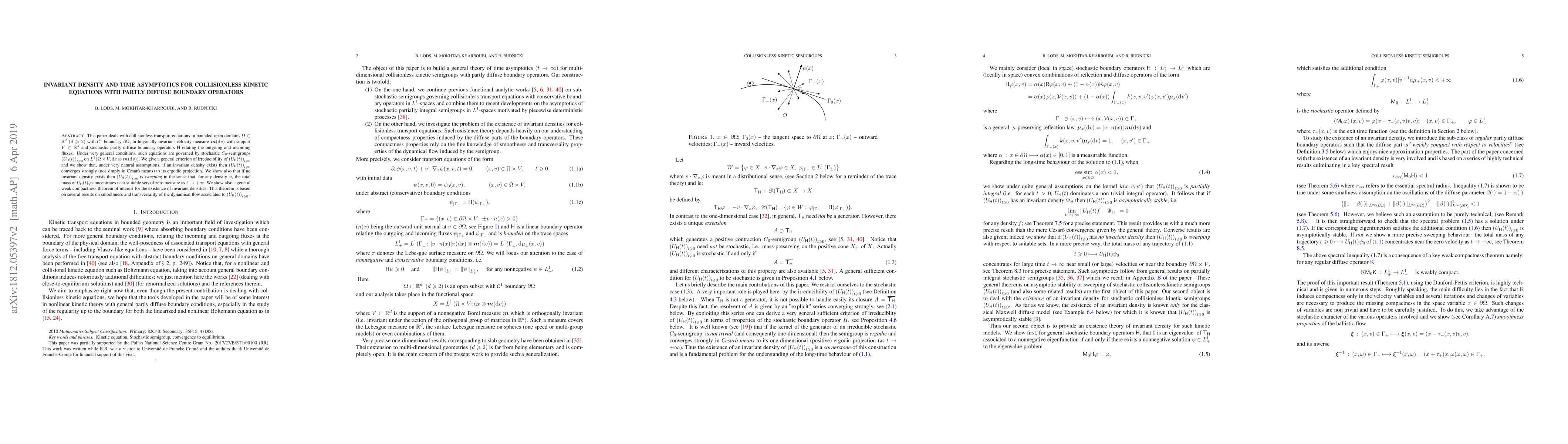 This research paper explores collisionless kinetic equations in bounded domains with diffuse boundary operators, showing convergence to ergodic projections under certain conditions and implications for the existence of invariant densities.
