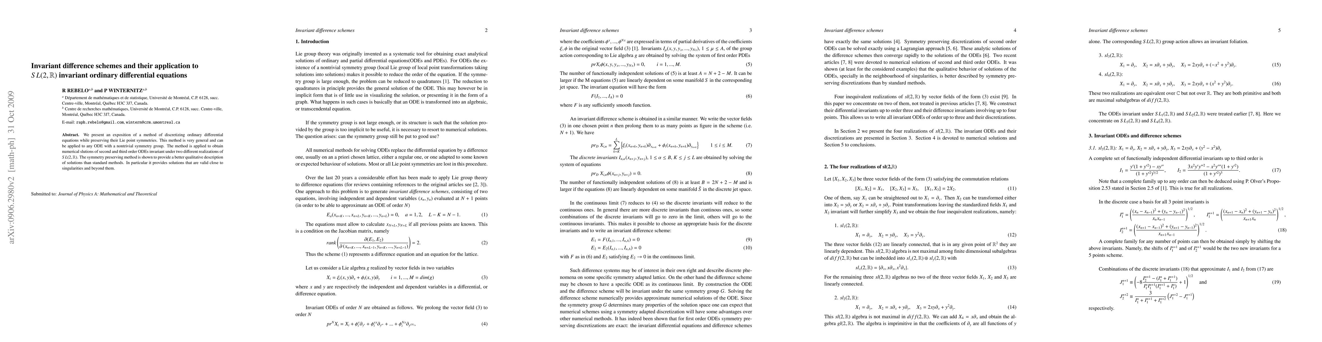 This paper introduces a symmetry-preserving discretization method for ordinary differential equations (ODEs) that maintains their Lie point symmetries, applied specifically to ODEs invariant under $SL(2,\mathbb{R})$. The method offers improved qualitative solutions, especially near singularities, compared to standard numerical techniques.