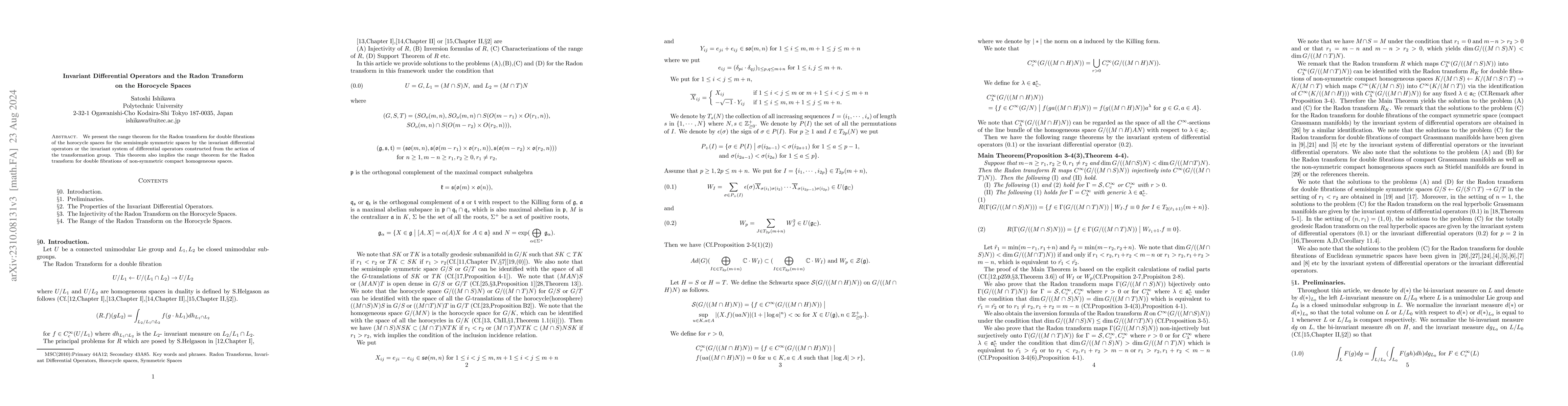 This paper establishes the range theorem for the Radon transform on horocycle spaces, utilizing invariant differential operators derived from the transformation group's action. The theorem also extends to non-symmetric compact homogeneous spaces.