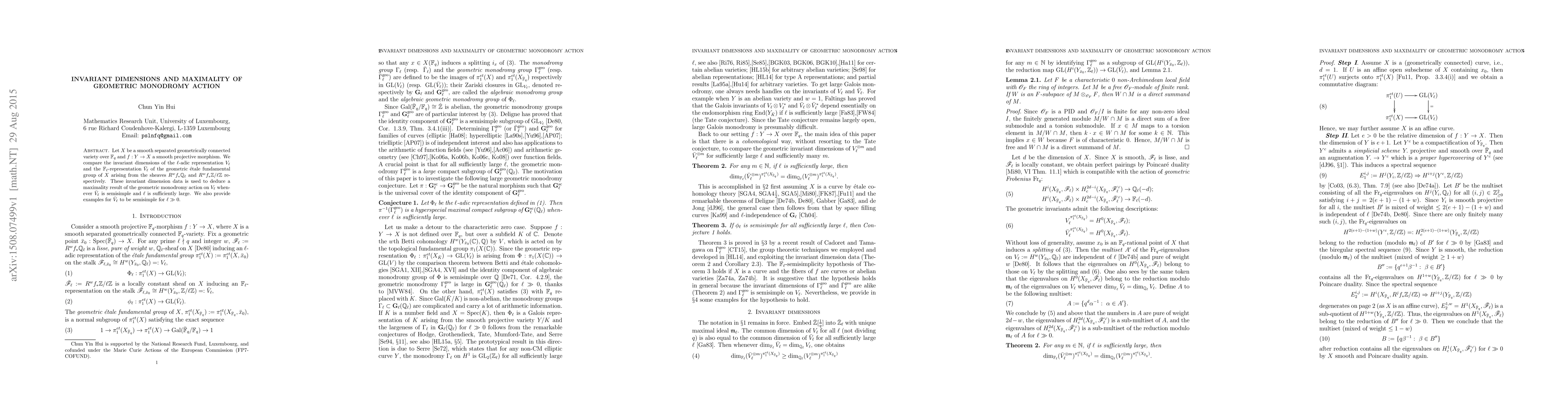 This paper investigates how large values of l improve the maximality of geometric monodromy action on certain representations of a connected variety X over F_q, leveraging invariant dimensions and semisimplicity of representations.