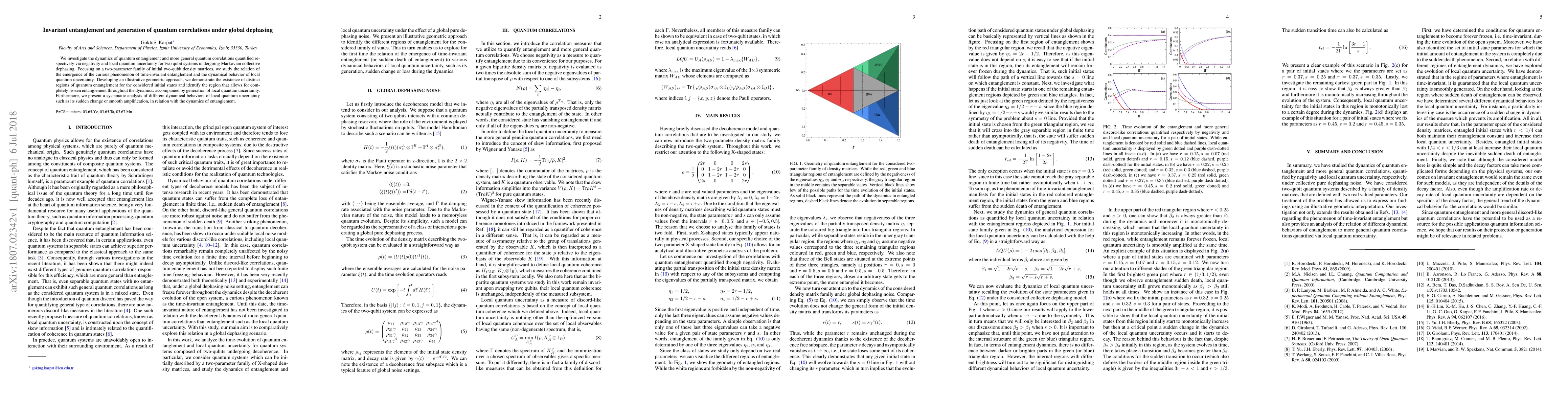This paper explores how quantum entanglement and correlations in two-qubit systems remain invariant under Markovian collective dephasing, identifying regions where entanglement persists while local quantum uncertainty emerges. A geometric approach reveals distinct dynamical behaviors of entanglement and local quantum uncertainty.