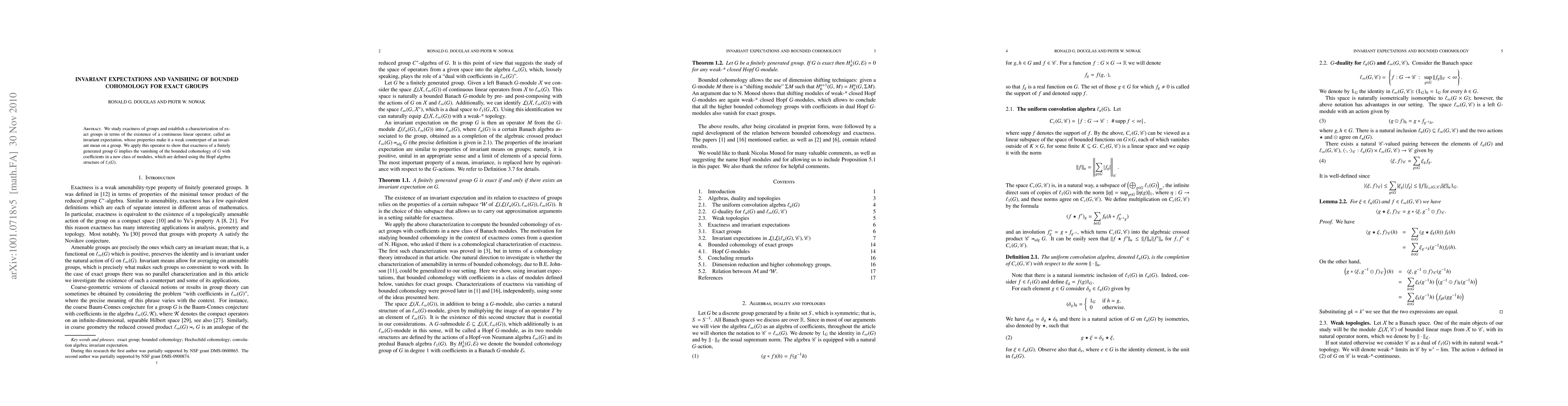 This paper characterizes exact groups via the existence of an invariant expectation, a weak counterpart of an invariant mean, and demonstrates that exactness leads to the vanishing of bounded cohomology for a specific class of modules derived from the Hopf algebra structure of $\ell_1(G)$.
