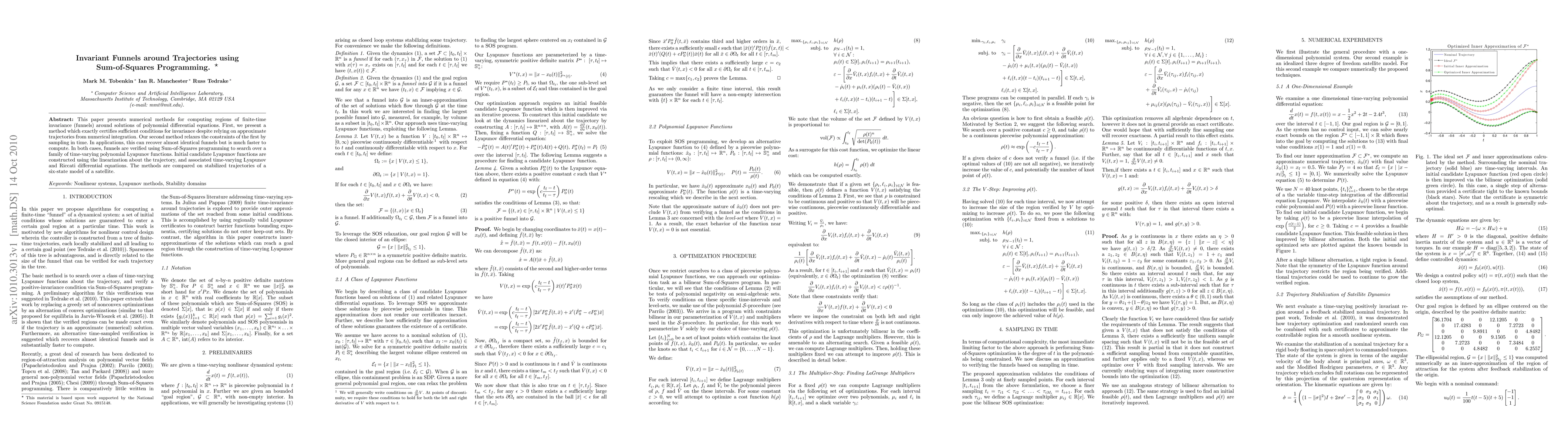 This paper develops numerical methods for computing invariant funnels around polynomial differential equation solutions using Sum-of-Squares programming, presenting both exact and faster approximate techniques for verifying these funnels via time-sampled constraints.