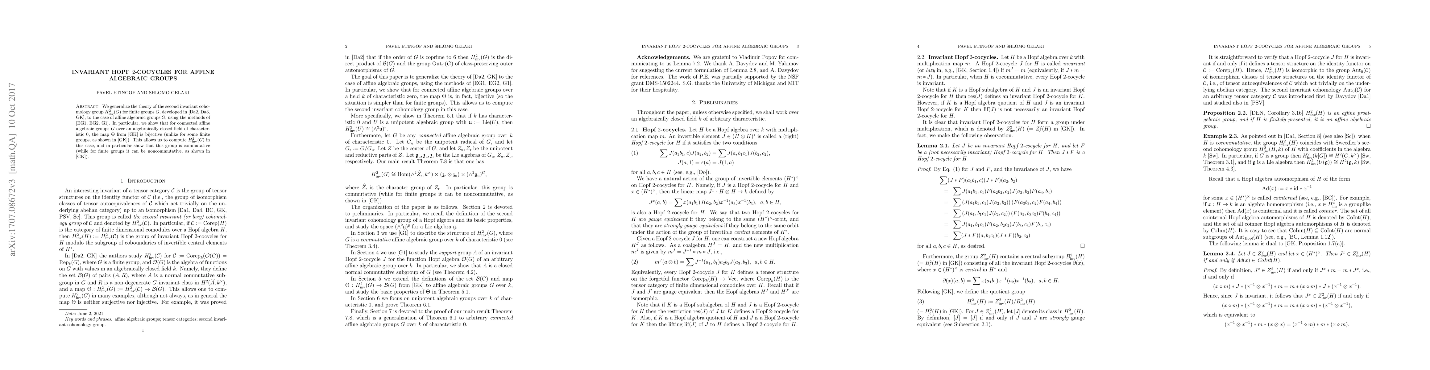 This paper generalizes the theory of second invariant cohomology for finite groups to affine algebraic groups, demonstrating that the map $\Theta$ is bijective for connected affine algebraic groups over fields of characteristic $0$. It concludes that the second invariant cohomology group $H^2_{\rm inv}(G)$ is commutative in this context.