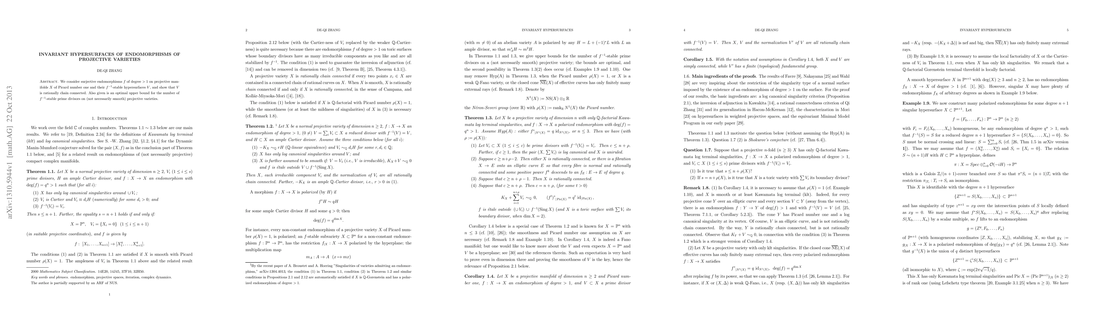 Summary: The paper investigates surjective endomorphisms on projective manifolds with Picard number one, proving that stable hypersurfaces under these endomorphisms are rationally chain connected, and provides an upper bound for the number of stable prime divisors on such varieties.