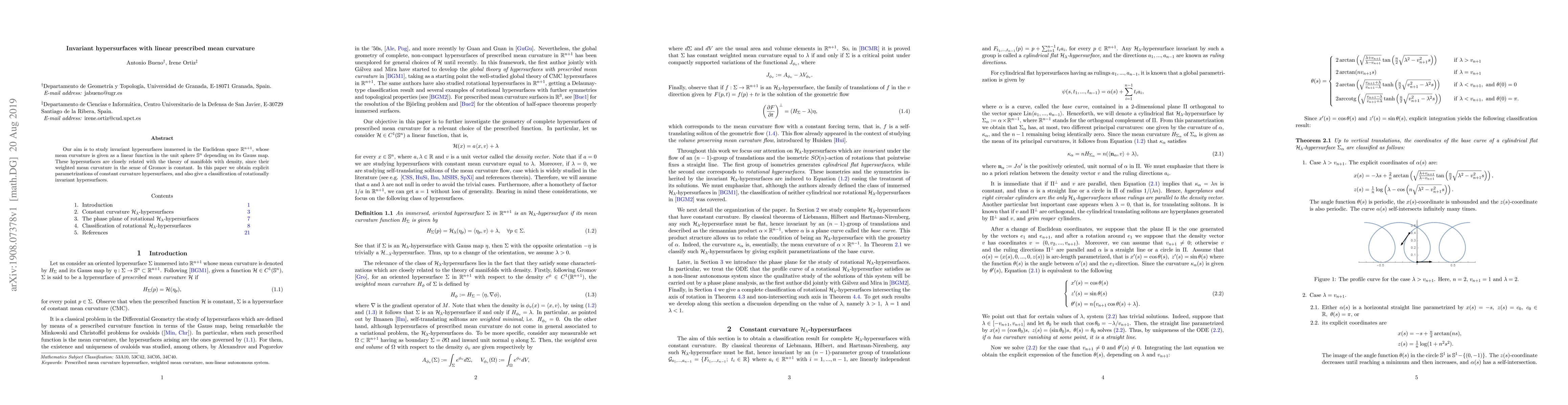 Our aim is to study invariant hypersurfaces immersed in the Euclidean space $\mathbb{R}^{n+1}$, whose mean curvature is given as a linear function in the unit sphere $\mathbb{S}^n$ depending on its Gauss map. These hypersurfaces are closely related with the theory of manifolds with density, since their weighted mean curvature in the sense of Gromov is constant. In this paper we obtain explicit parametrizations of constant curvature hypersurfaces, and also give a classification of rotationally invariant hypersurfaces.