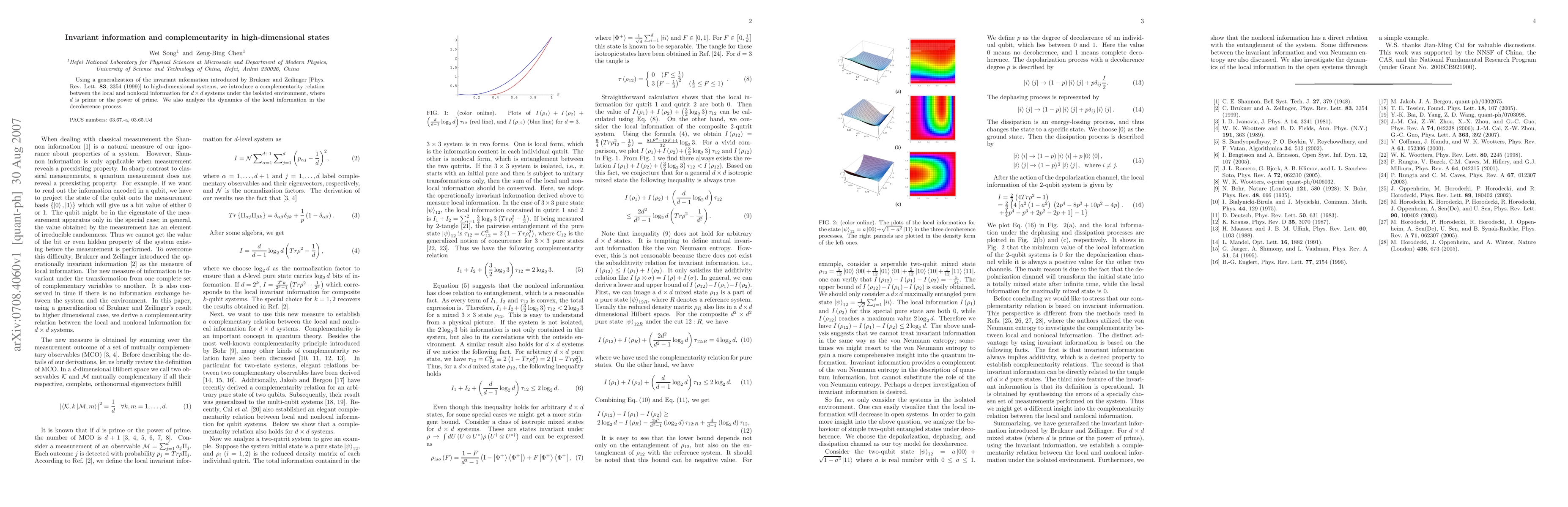 Researchers introduce a new concept connecting local and nonlocal information in high-dimensional systems, revealing complementarity in their behavior during decoherence.