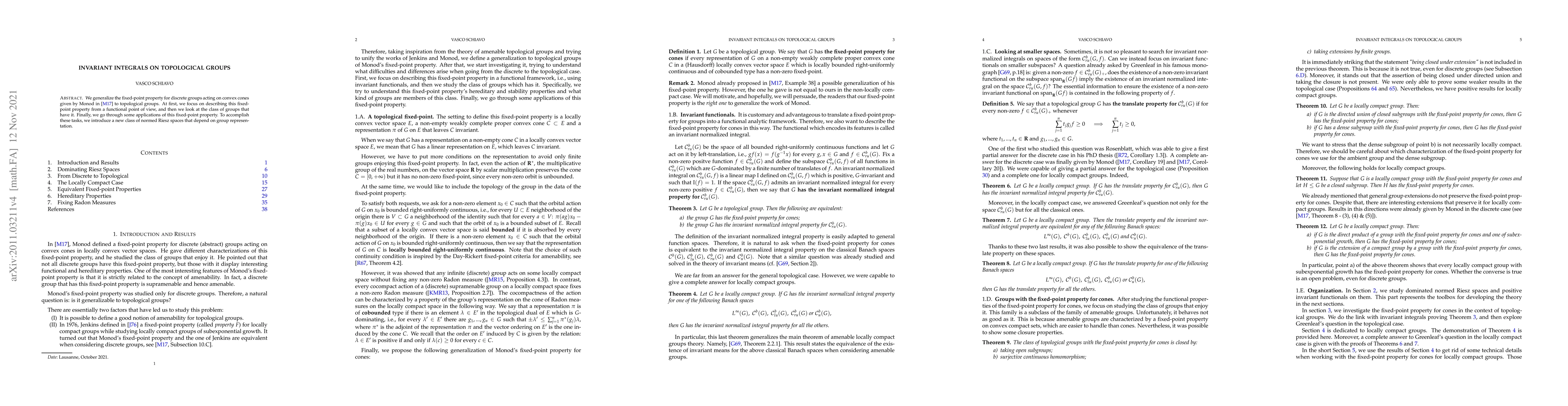 We generalize the fixed-point property for discrete groups acting on convex cones given by Monod in \cite{monod} to topological groups. At first, we focus on describing this fixed-point property from a functional point of view, and then we look at the class of groups that have it. Finally, we go through some applications of this fixed-point property. To accomplish these tasks, we introduce a new class of normed Riesz spaces that depend on group representation.