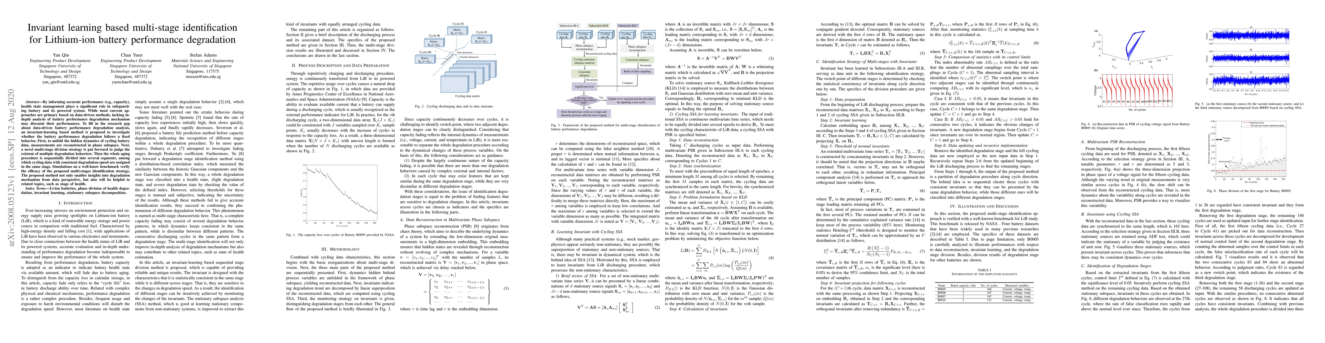 By informing accurate performance (e.g., capacity), health state management plays a significant role in safeguarding battery and its powered system. While most current approaches are primarily based on data-driven methods, lacking in-depth analysis of battery performance degradation mechanism may discount their performances. To fill in the research gap about data-driven battery performance degradation analysis, an invariant learning based method is proposed to investigate whether the battery performance degradation follows a fixed behavior. First, to unfold the hidden dynamics of cycling battery data, measurements are reconstructed in phase subspace. Next, a novel multi-stage division strategy is put forward to judge the existent of multiple degradation behaviors. Then the whole aging procedure is sequentially divided into several segments, among which cycling data with consistent degradation speed are assigned in the same stage. Simulations on a well-know benchmark verify the efficacy of the proposed multi-stages identification strategy. The proposed method not only enables insights into degradation mechanism from data perspective, but also will be helpful to related topics, such as stage of health.