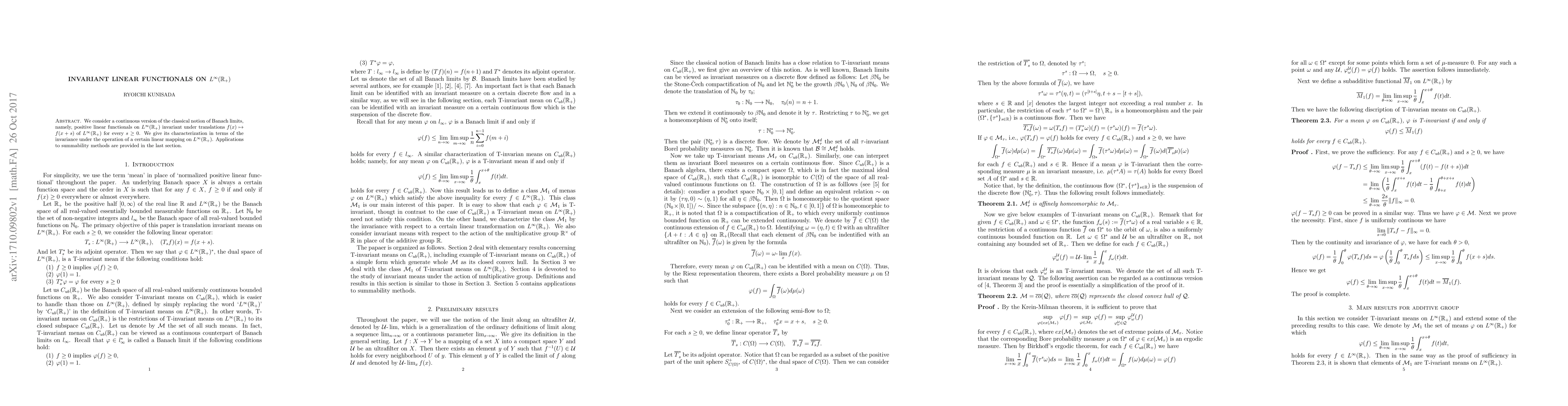 This paper explores positive linear functionals on $L^{rac{1}{e}}( _+)$ that remain unchanged under translations, a concept related to Banach limits. It characterizes these functionals in terms of their invariance under a specific linear mapping.