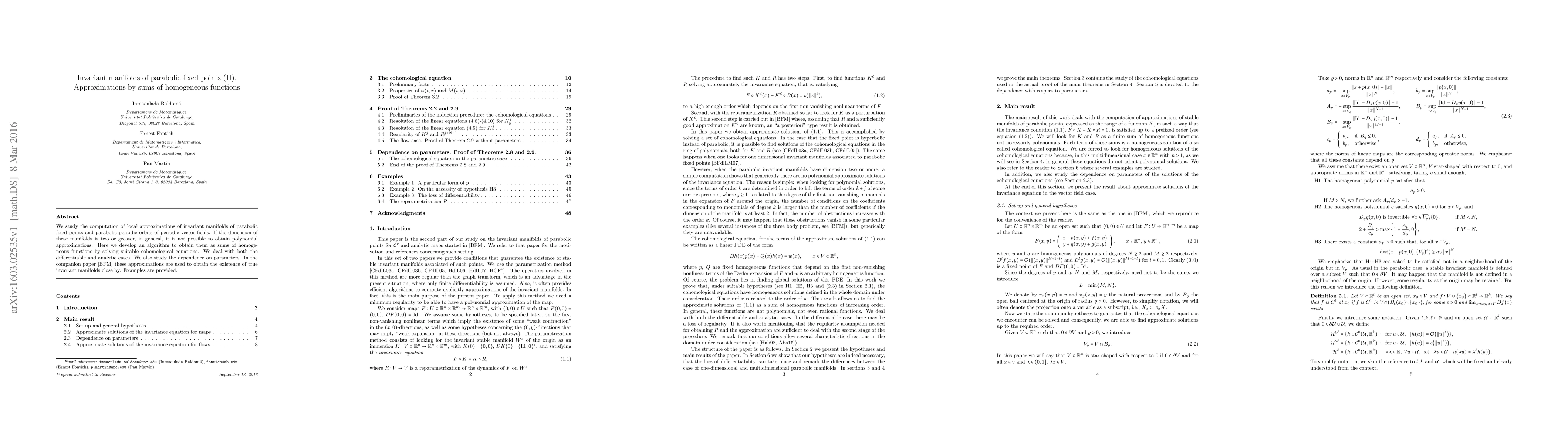 This paper develops an algorithm to compute local approximations of invariant manifolds of parabolic fixed points and periodic orbits as sums of homogeneous functions, providing polynomial approximations in cases where higher-order terms can be handled.