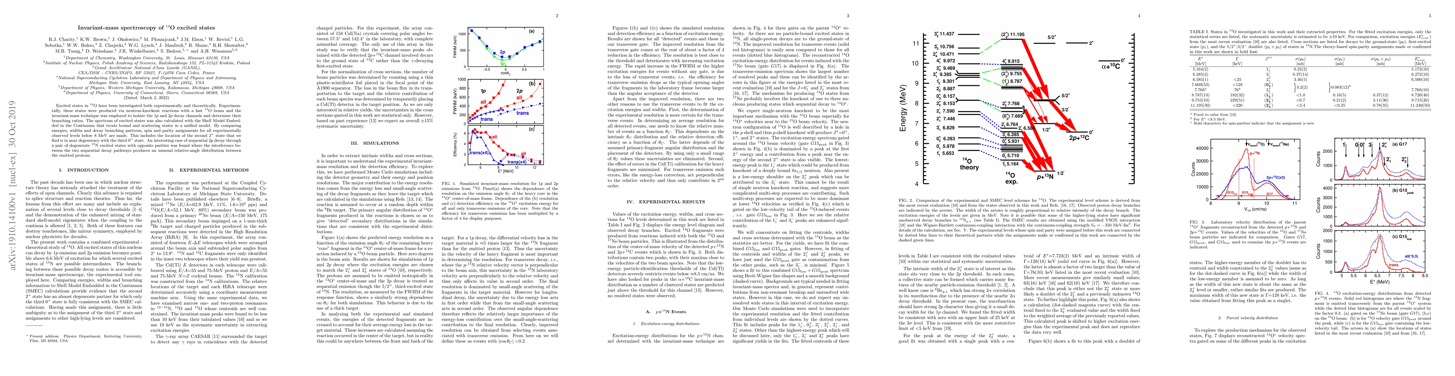 Researchers used a unique technique to study excited states in oxygen-14, revealing new insights into their decay patterns and spin assignments. The findings include an unusual relative-angle distribution between emitted protons in sequential 2-p decays.