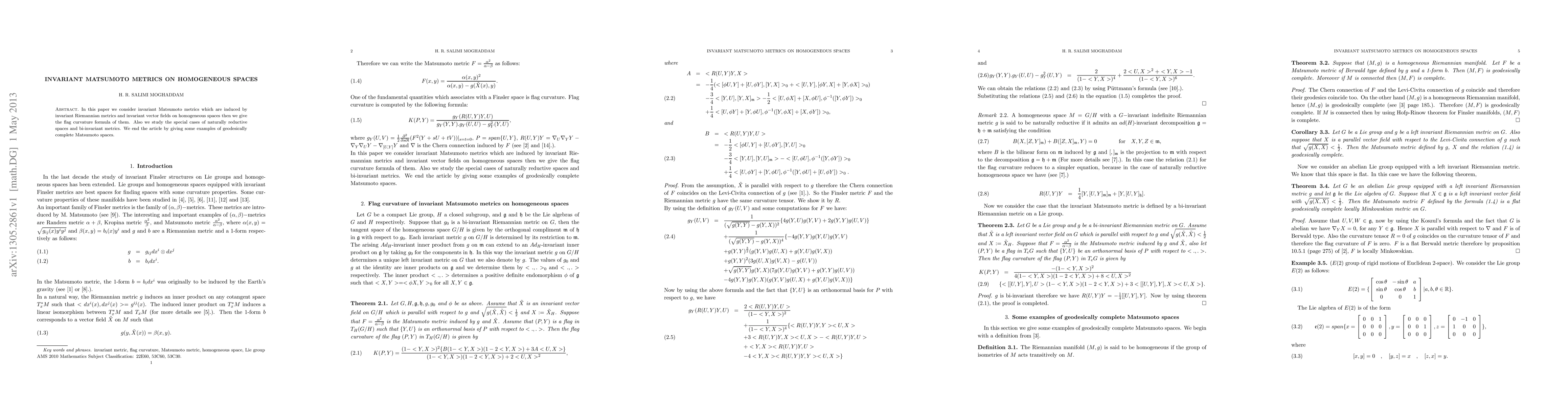 This paper investigates invariant Matsumoto metrics on homogeneous spaces, deriving the flag curvature formula and exploring naturally reductive spaces and bi-invariant metrics. It concludes with examples of geodesically complete Matsumoto spaces.