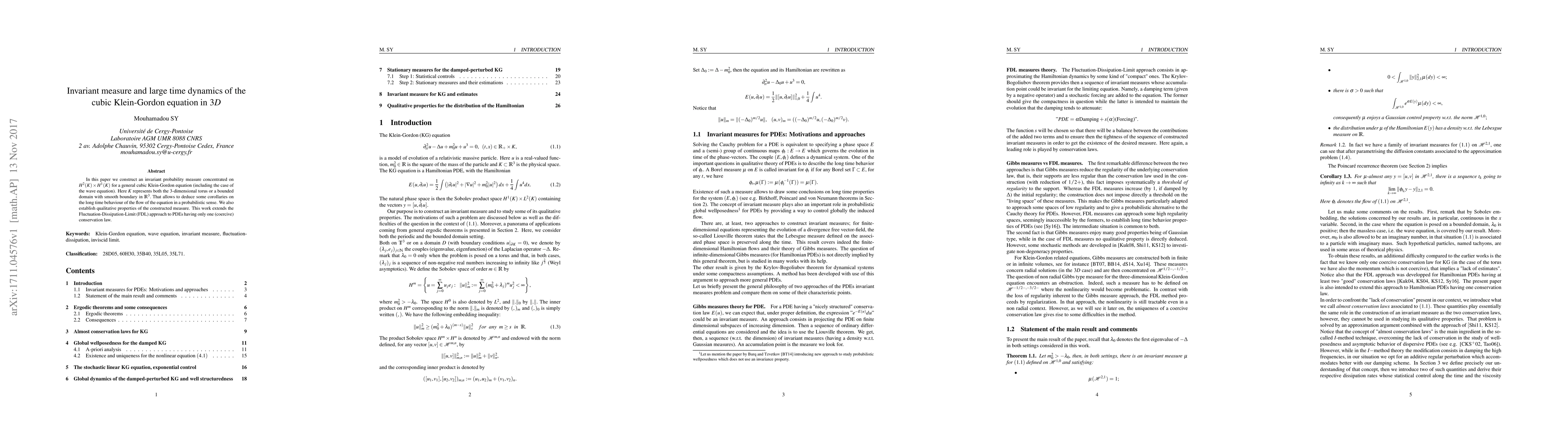 In this paper we construct an invariant probability measure concentrated on $H^2(K)\times H^1(K)$ for a general cubic Klein-Gordon equation (including the case of the wave equation). Here $K$ represents both the $3$-dimensional torus or a bounded domain with smooth boundary in $\Bbb R^3.$ That allows to deduce some corollaries on the long time behaviour of the flow of the equation in a probabilistic sense. We also establish qualitative properties of the constructed measure. This work extends the Fluctuation-Dissipation-Limit (FDL) approach to PDEs having only one (coercive) conservation law.