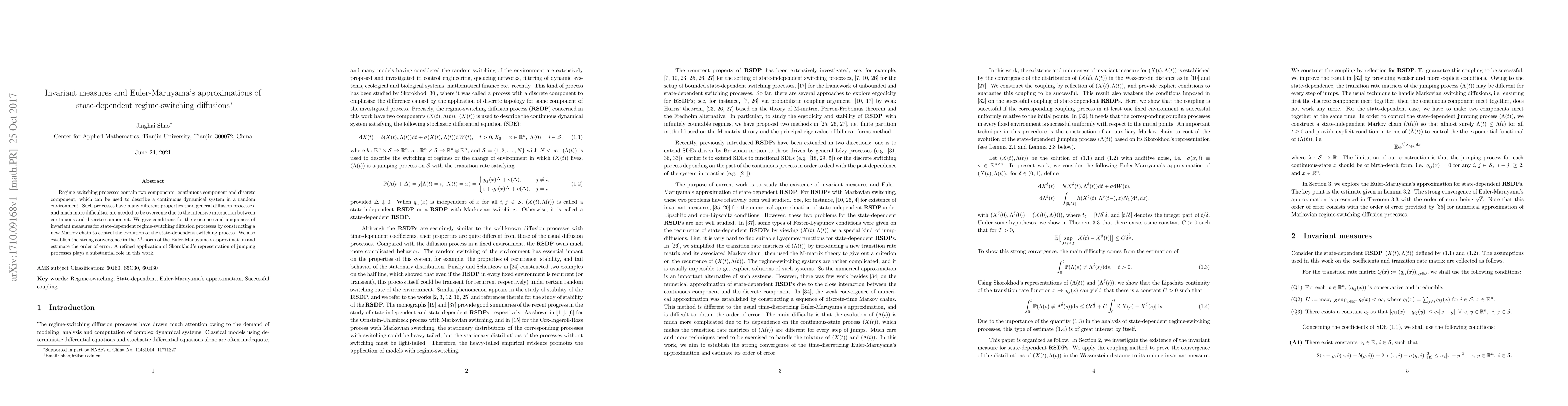 This paper investigates the existence and uniqueness of invariant measures for state-dependent regime-switching diffusion processes, employing a novel Markov chain approach. It also establishes the strong convergence of Euler-Maruyama's approximations and determines the error order, utilizing Skorokhod's representation for jumping processes.