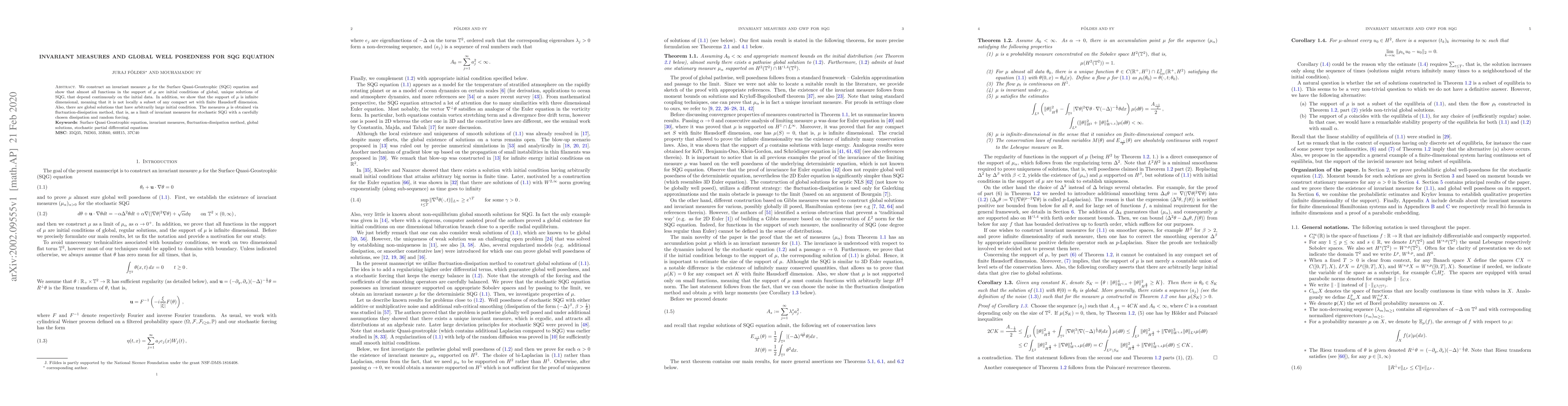 This paper constructs an invariant measure $\mu$ for the SQG equation, demonstrating that almost all functions in the support of $\mu$ generate global, unique solutions that depend continuously on initial data. The support of $\mu$ is shown to be infinitely dimensional, indicating the existence of global solutions with arbitrarily large initial conditions.