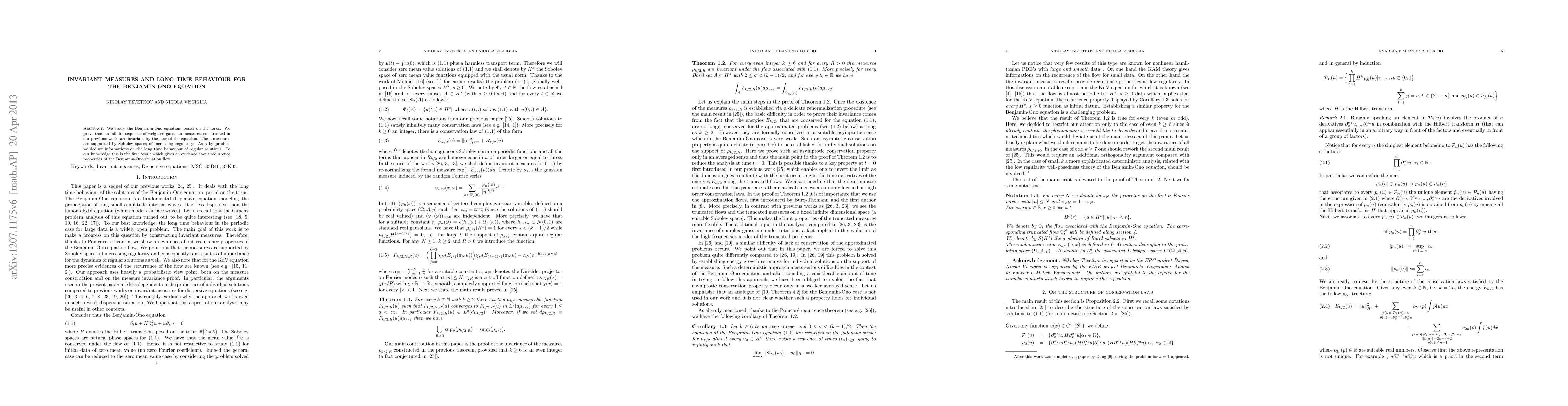 This paper proves that an infinite sequence of weighted Gaussian measures are invariant under the Benjamin-Ono equation's flow, providing insights into the long-time behavior and recurrence properties of regular solutions. This is the first evidence of such recurrence properties for the Benjamin-Ono equation.