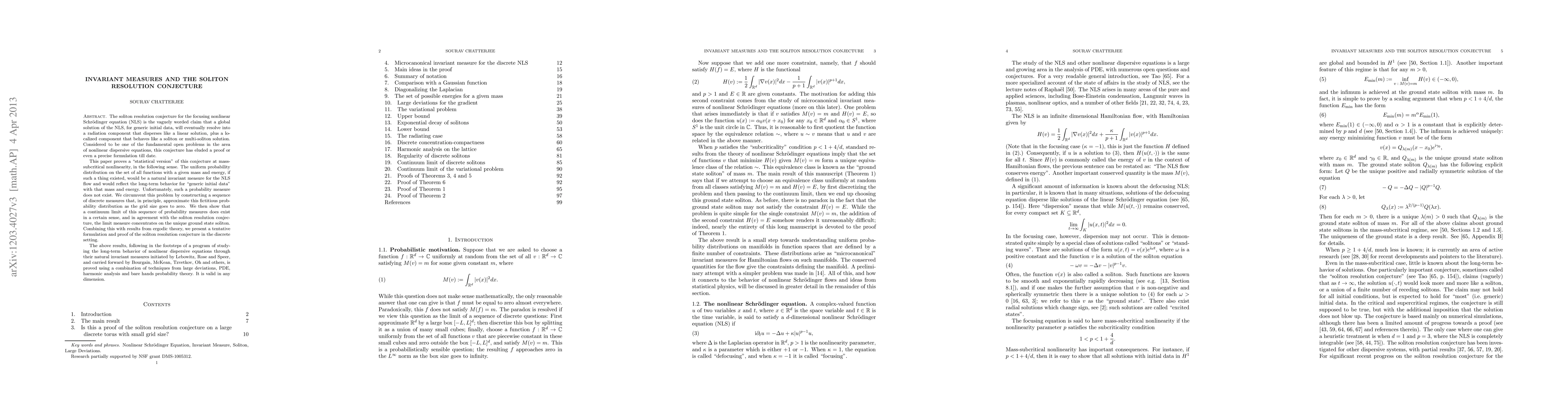 The paper introduces a novel statistical formulation of the soliton resolution conjecture and demonstrates its applicability through the construction of discrete approximating measures, offering insights into the long-term behavior of generic initial data for the NLS flow.