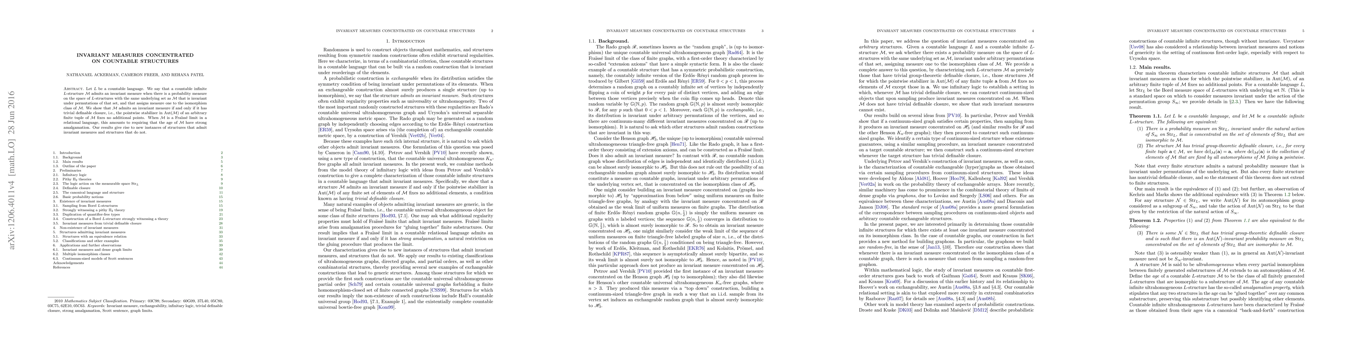This paper investigates countable L-structures that admit invariant measures, showing they exist if and only if the structures have trivial definable closure. For Fraisse limits, this condition translates to requiring the age of the structure to have strong amalgamation.