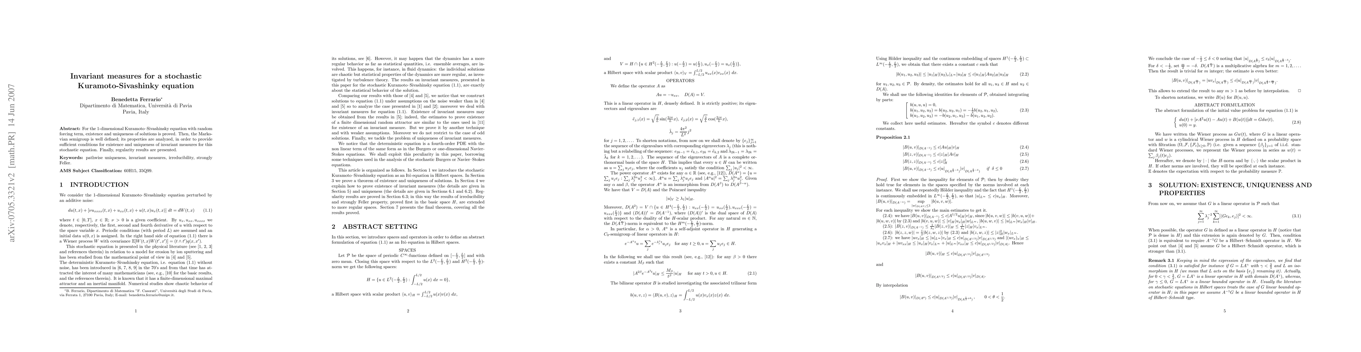 This paper proves the existence and uniqueness of solutions for a stochastic Kuramoto-Sivashinsky equation with random forcing. It then analyzes the Markovian semigroup to establish sufficient conditions for the existence and uniqueness of invariant measures for this stochastic system.
