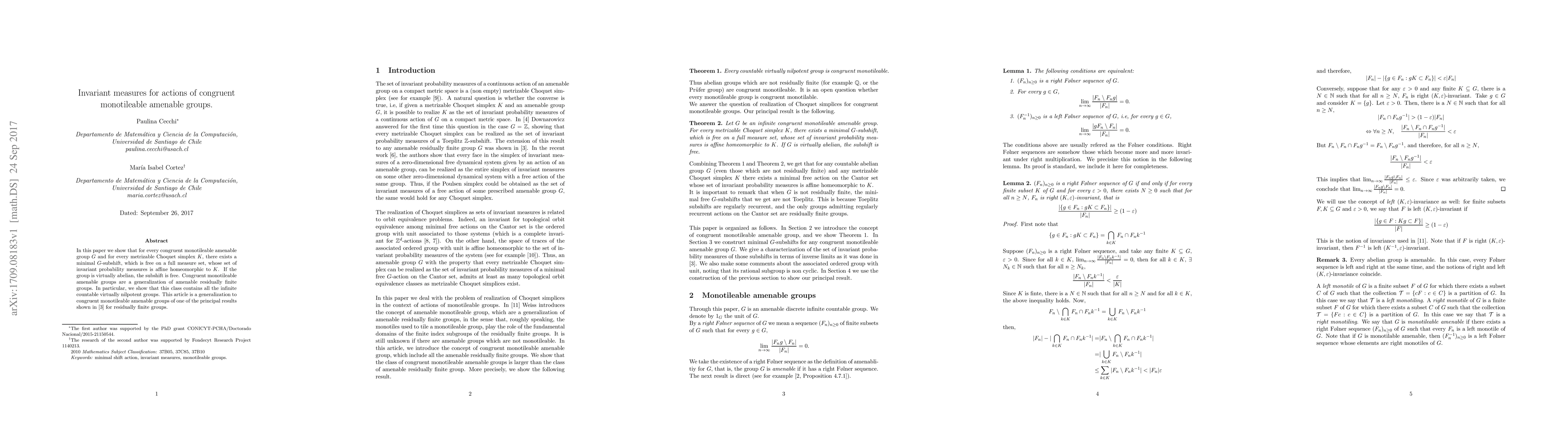 This paper demonstrates the existence of minimal $G$-subshifts for congruent monotileable amenable groups $G$, where the invariant measures align with metrizable Choquet simplices $K$. For virtually abelian groups, these subshifts are shown to be free, extending results from residually finite groups to a broader class.