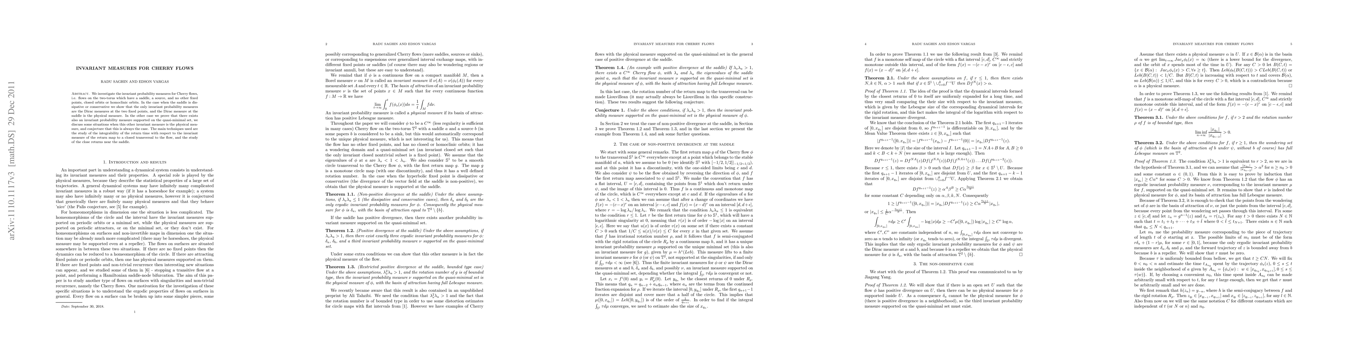 Researchers investigate invariant probability measures for Cherry flows on the two-torus, finding that in some cases there is an additional measure supported on a quasi-minimal set, which they conjecture to be the physical measure always.