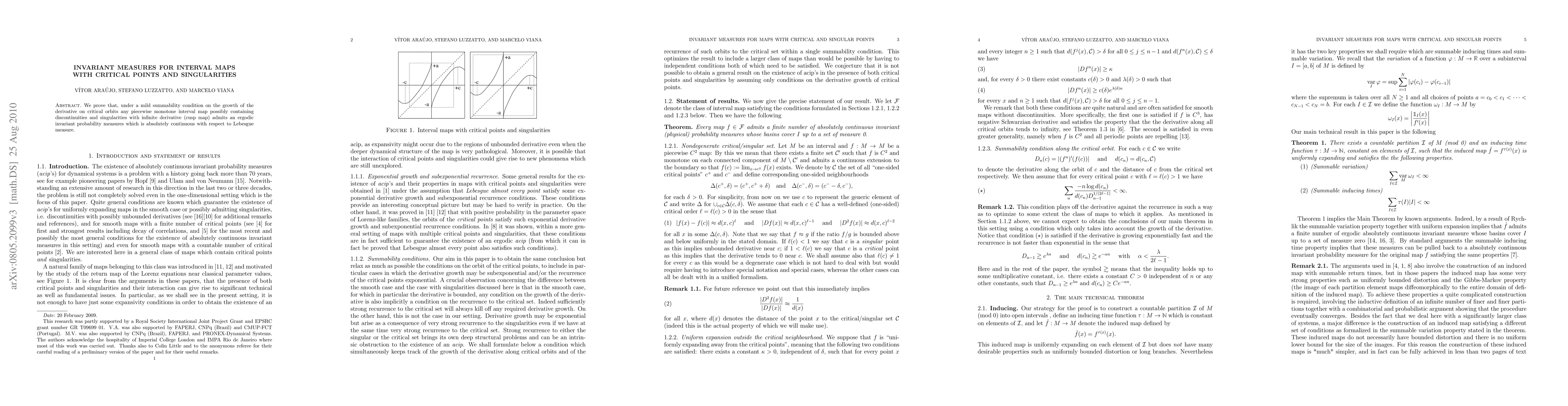 Summary: This paper demonstrates that piecewise monotone interval maps, even with discontinuities and cusp singularities, possess ergodic invariant probability measures that are absolutely continuous with respect to Lebesgue measure, provided the derivative's growth on critical orbits satisfies a mild summability condition.