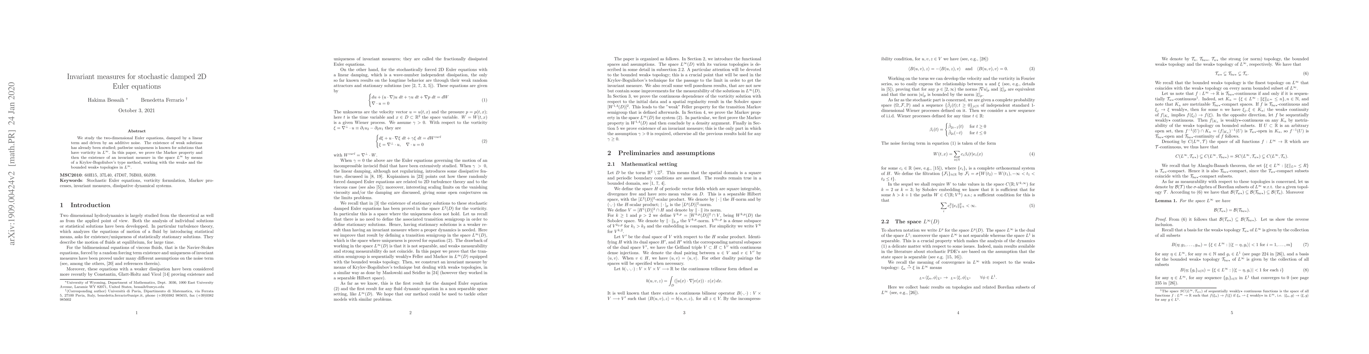 Researchers studied 2D Euler equations with damping and noise, proving a Markov property and existence of an invariant measure in the space L^infty using Krylov-Bogoliubov's method.