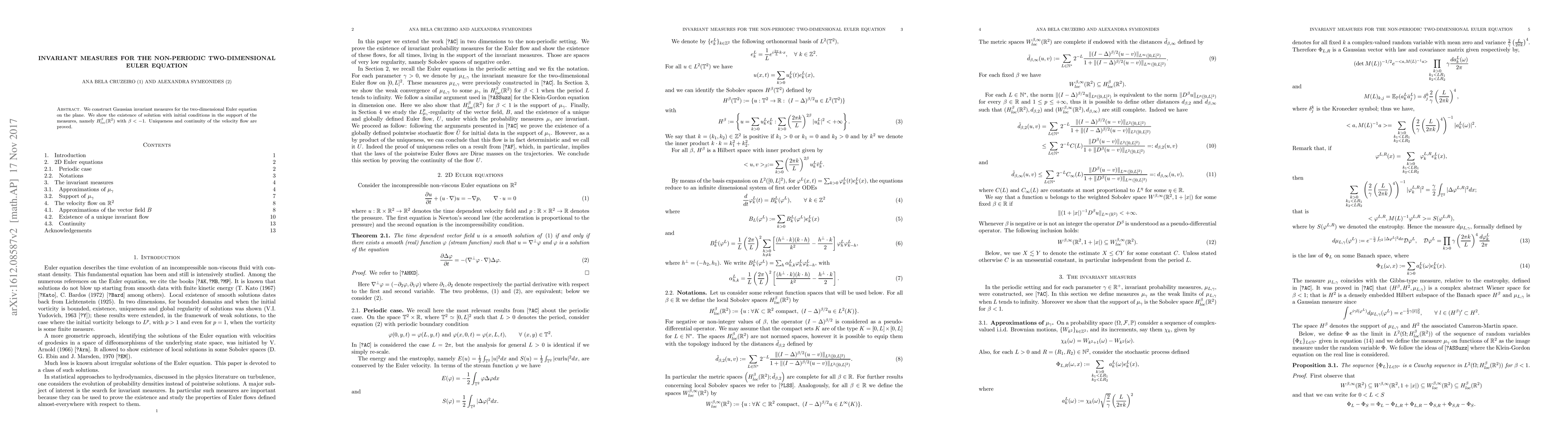 This paper constructs Gaussian invariant measures for the two-dimensional Euler equation, demonstrating the existence of solutions with initial conditions in $H^\beta_{loc}(\R^2)$ for $\beta<-1$. It also proves the uniqueness and continuity of the velocity flow.
