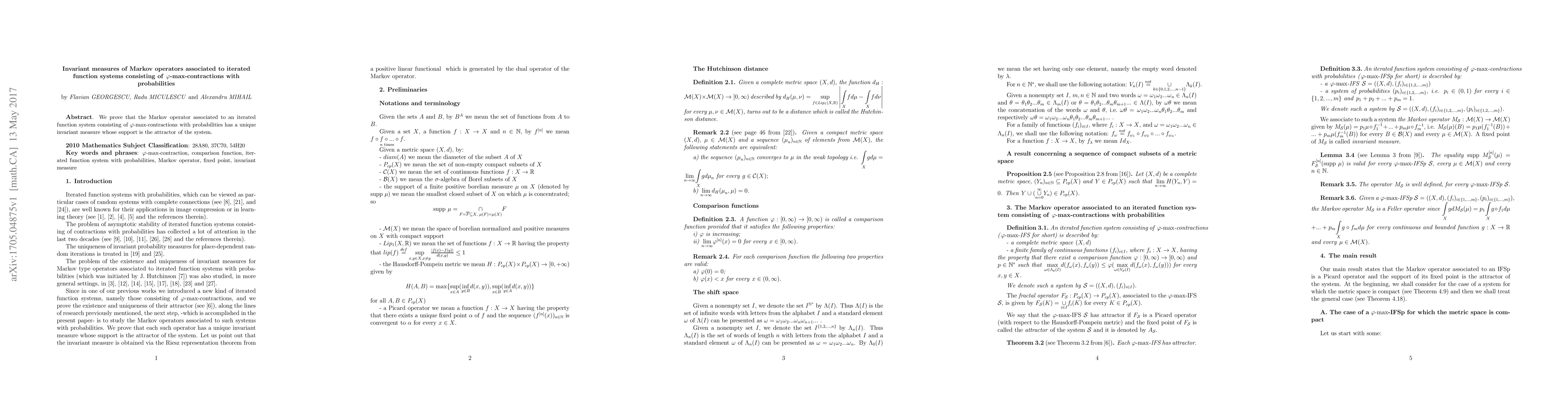 We prove that the Markov operator associated to an iterated function system consisting of phi-max-contractions with probabilities has a unique invariant measure whose support is the attractor of the system.