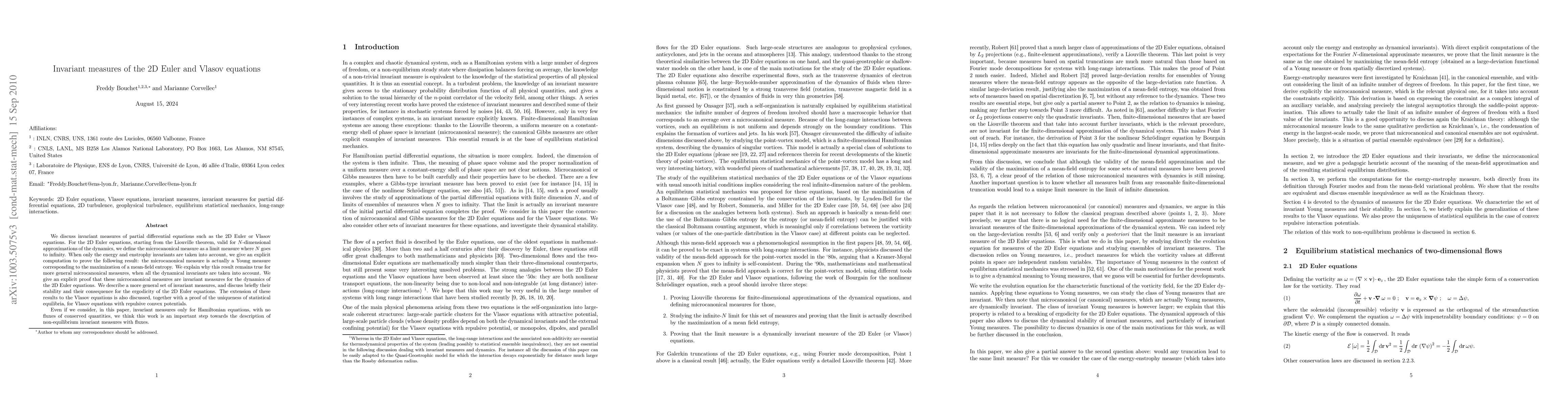 The paper presents a direct dynamical approach to studying invariant measures, proving their stability and extending the findings to the Vlasov equation.