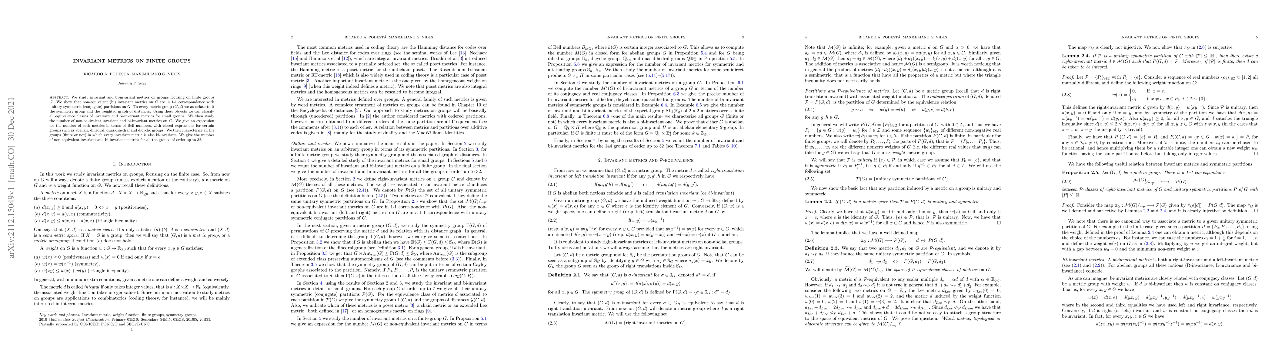 This paper investigates invariant and bi-invariant metrics on finite groups, establishing a one-to-one correspondence between non-equivalent metrics and unitary symmetric partitions. It classifies such metrics using symmetry groups and weighted graphs, and provides expressions for their count in terms of Bell numbers for specific groups.