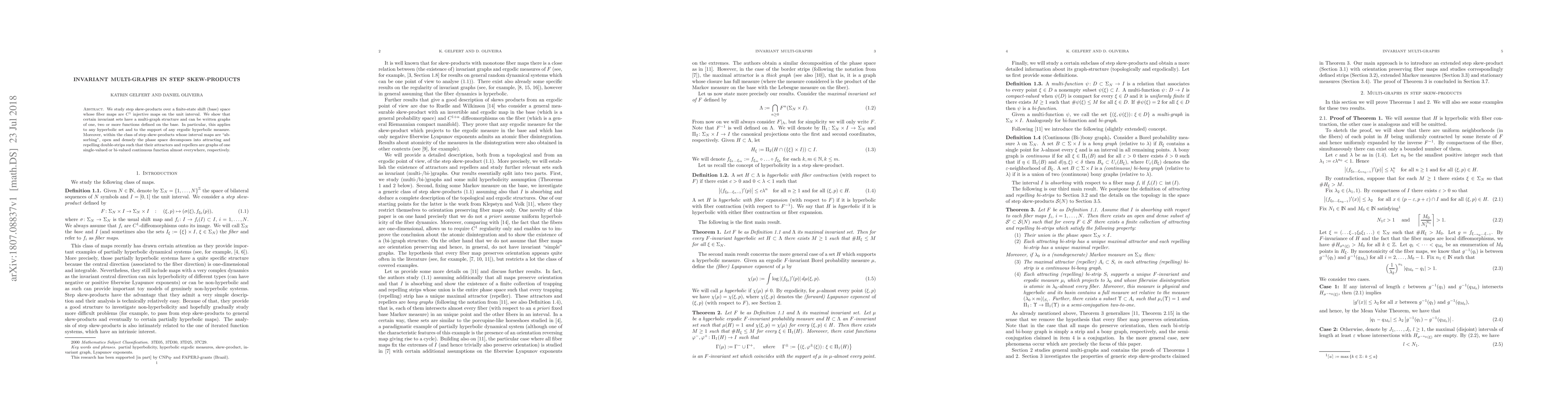 This paper investigates step skew-products over finite-state shift spaces, demonstrating that invariant sets exhibit multi-graph structures represented by one or more functions on the base. It shows that such structures apply to hyperbolic sets and ergodic hyperbolic measures, and in absorbing interval maps, the phase space decomposes into double-strips with attractors and repellers represented by continuous single-valued or bi-valued functions.