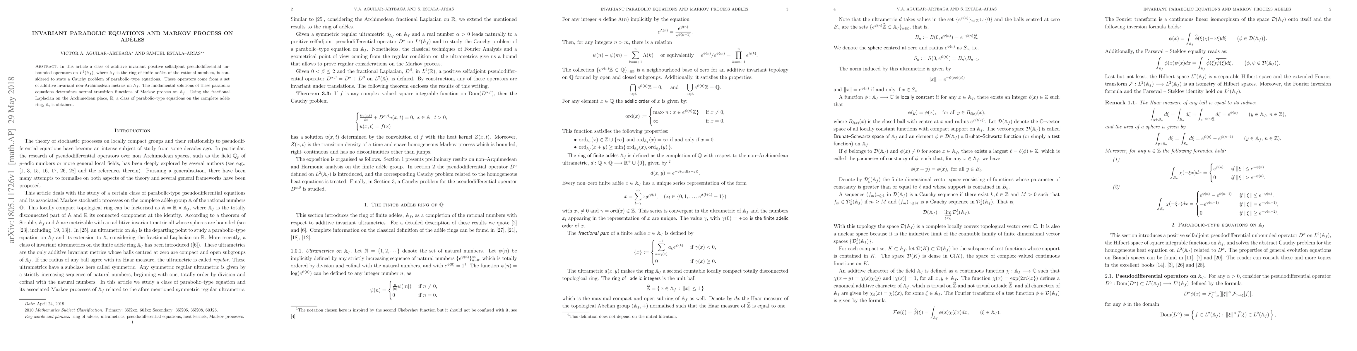 This paper explores invariant parabolic equations on the ring of finite adèles of rational numbers, linking them to Markov processes, and establishes a Cauchy problem for these equations using additive invariant metrics.