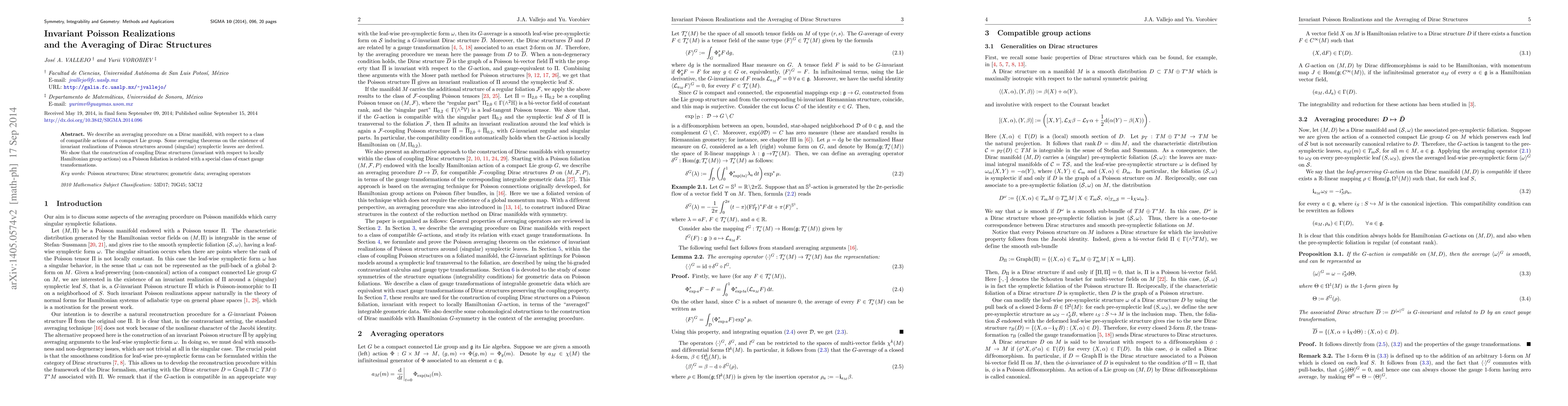This paper introduces an averaging method on Dirac manifolds under compatible compact Lie group actions, proving theorems for invariant Poisson realizations around symplectic leaves. It connects the construction of coupling Dirac structures on Poisson foliations to specific exact gauge transformations.