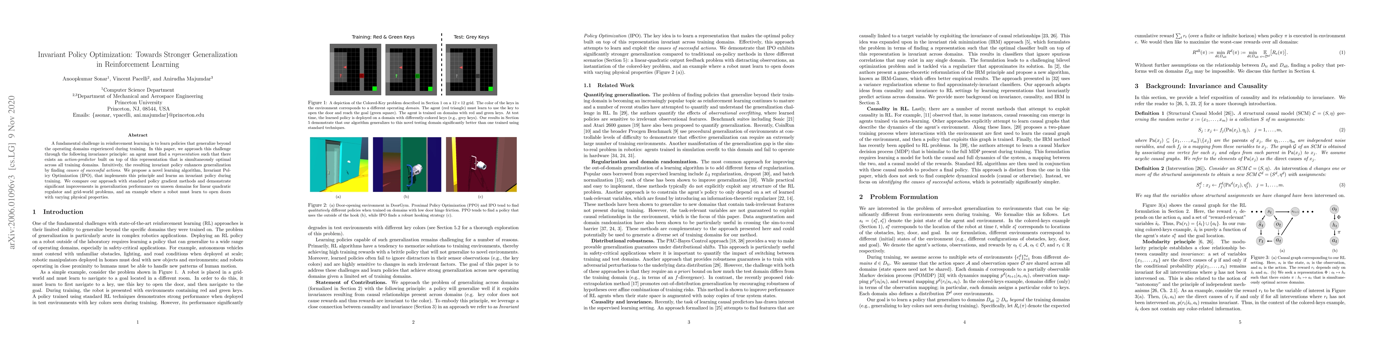 Researchers propose a novel learning algorithm called Invariant Policy Optimization that improves generalization in reinforcement learning by finding invariant policies that work across multiple training domains.