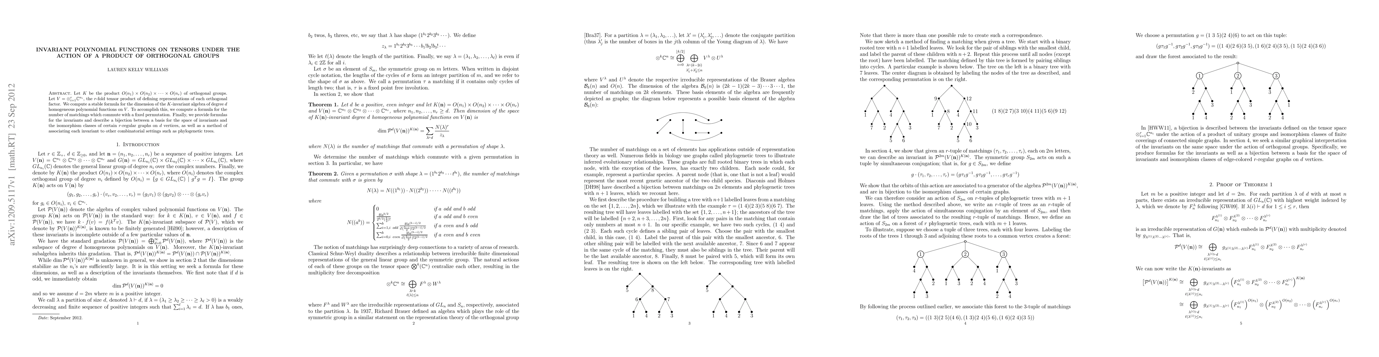 Let K be the product O(n_1) x O(n_2) x ... x O(n_r) of orthogonal groups. Let V the r-fold tensor product of defining representations of each orthogonal factor. We compute a stable formula for the dimension of the K-invariant algebra of degree d homogeneous polynomial functions on V. To accomplish this, we compute a formula for the number of matchings which commute with a fixed permutation. Finally, we provide formulas for the invariants and describe a bijection between a basis for the space of invariants and the isomorphism classes of certain r-regular graphs on d vertices, as well as a method of associating each invariant to other combinatorial settings such as phylogenetic trees.