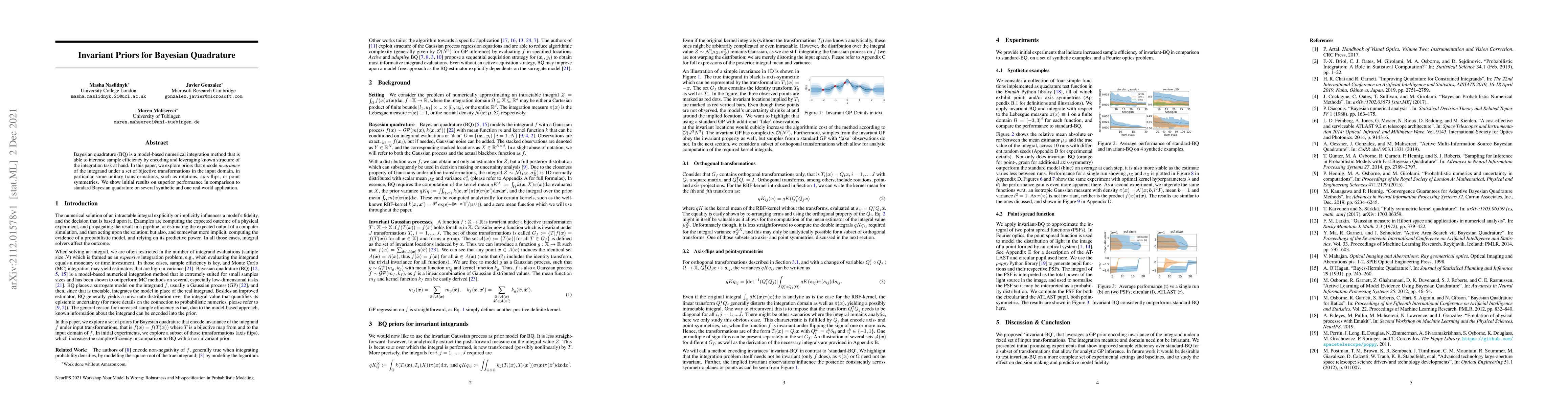 This paper explores the use of invariant priors in Bayesian quadrature to improve performance on integration tasks with symmetrical structures, outperforming standard methods in several synthetic and real-world applications.