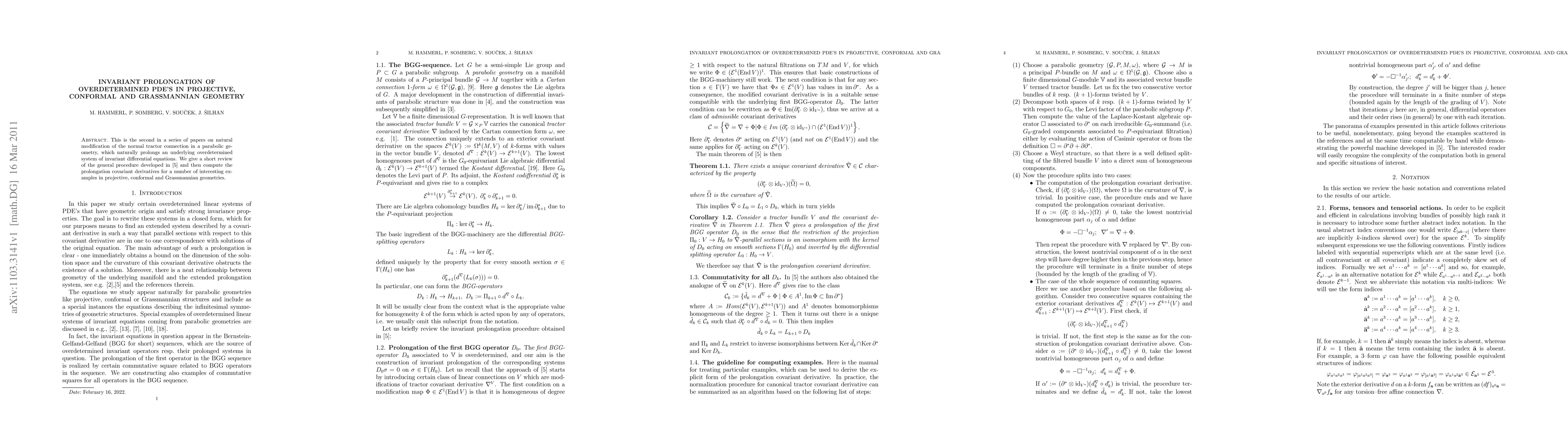 This is the second in a series of papers on natural modification of the normal tractor connection in a parabolic geometry, which naturally prolongs an underlying overdetermined system of invariant differential equations. We give a short review of the general procedure developed in [5] and then compute the prolongation covariant derivatives for a number of interesting examples in projective, conformal and Grassmannian geometries.