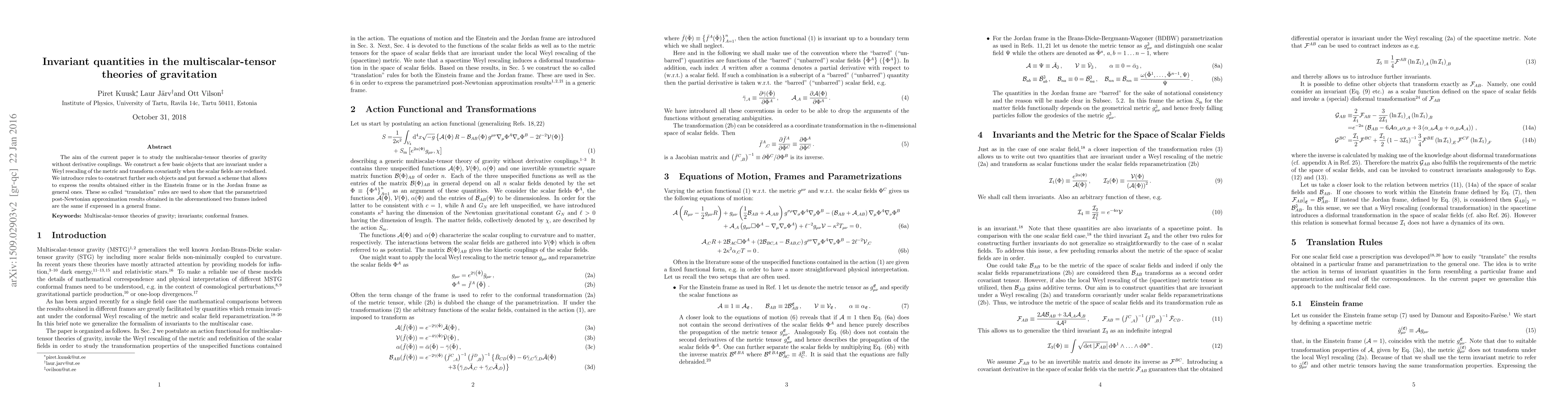This study extends the formalism of invariant quantities from single scalar fields to multiscalar-tensor theories, enabling a more comprehensive analysis of gravitational theories and their experimental tests.