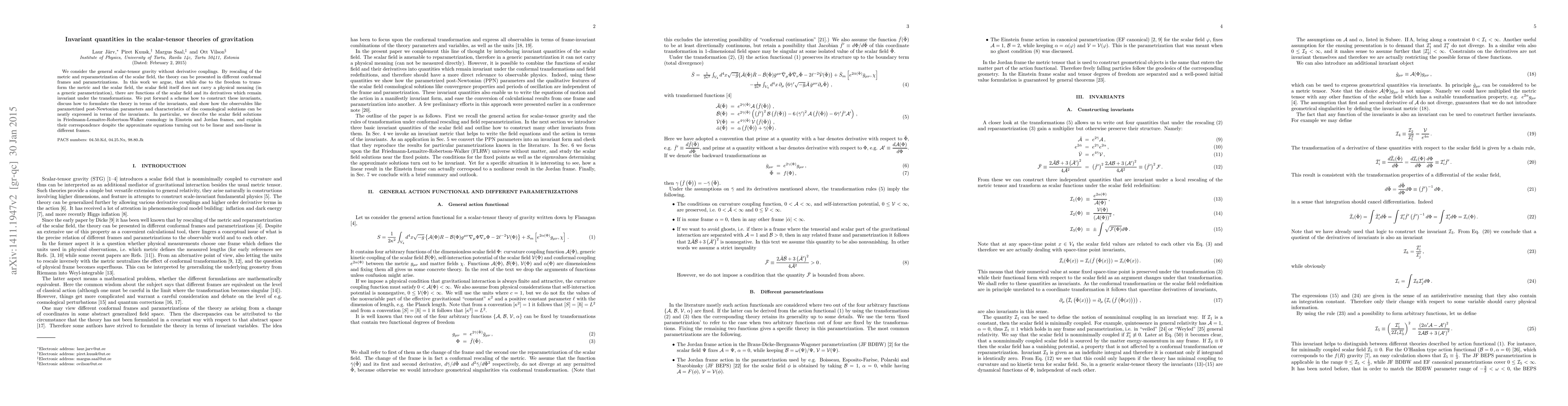 Researchers in scalar-tensor gravity theories found that certain functions of the scalar field remain invariant under transformations, allowing for a more unified understanding of the theory and its applications to cosmology.